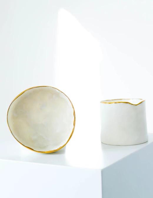 To wszystko są przypadki.Kiedyś w sklepie w Mediolanie zobaczyłam metalową bransoletkę, która wyglądała jak porcelanowa. Spontanicznie chciałam ją kupić, ale kosztowała 850 euro. Pomyślałam, że zrobię sobie taką z porcelany. Opracowanie do tego odpowiedniej technologii zajęło mi dwa miesiące. Zrobiłam ją dla siebie używając technik dawnych. Bransoletka jest bardzo przyjemna w noszeniu, bo przyjmuje temperaturę ciała. Świeczki natomiast zrobiłam na zamówienie concept store’u znajdującego się w Hotelu Europejskim. Bardzo długo mnie na nie namawiano. Opakowanie to między innymi rzadkie 24 karatowe matowe złoto, techniki rzeźbiarskie. Poszukiwanie zapachu to osobna, długa historia. Dla Hotelu Europejskiego robiłam instalacje porcelanowe, sufitowe i na ściany, a ostatnio zaprojektowałam też serwis kawowy dla jednej i dwóch osób.
