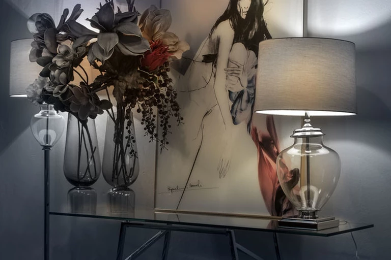 Niebywałe wyczucie estetyki oraz nowatorskie podejście do sztuki urządzania wnętrz znalazły odzwierciedlenie w finezyjnej serii barwnych rysunków na szkle autorstwa Marcina Paprockiego i Mariusza Brzozowskiego. Miękkie linie kreślone z artystyczną nonszalancją godną największych osobowości świata high fashion, przybrały kształt trzech wizerunków efemerycznych kobiet. Ich forma nawiązuje do tworzonych w pośpiechu, modowych szkiców prezentujących kreacje, które pokochamy w nadchodzących sezonach. Choć tym razem to obrazy, które zapamiętamy na dłużej, także za sprawą ich wyjątkowej kolorystyki. Rysunki na szkle dostępne są w odcieniach ognistego oranżu z elementami brązu, pulsującego granatu i butelkowej zieleni z odrobiną fioletu, aż w końcu w wydaniu delikatnych beży i pudrowego różu. Dzięki temu doskonale zaprezentują się solo lub w komplecie na salonowych ścianach, na komodzie w sypialni czy w towarzystwie kobiecej toaletki.