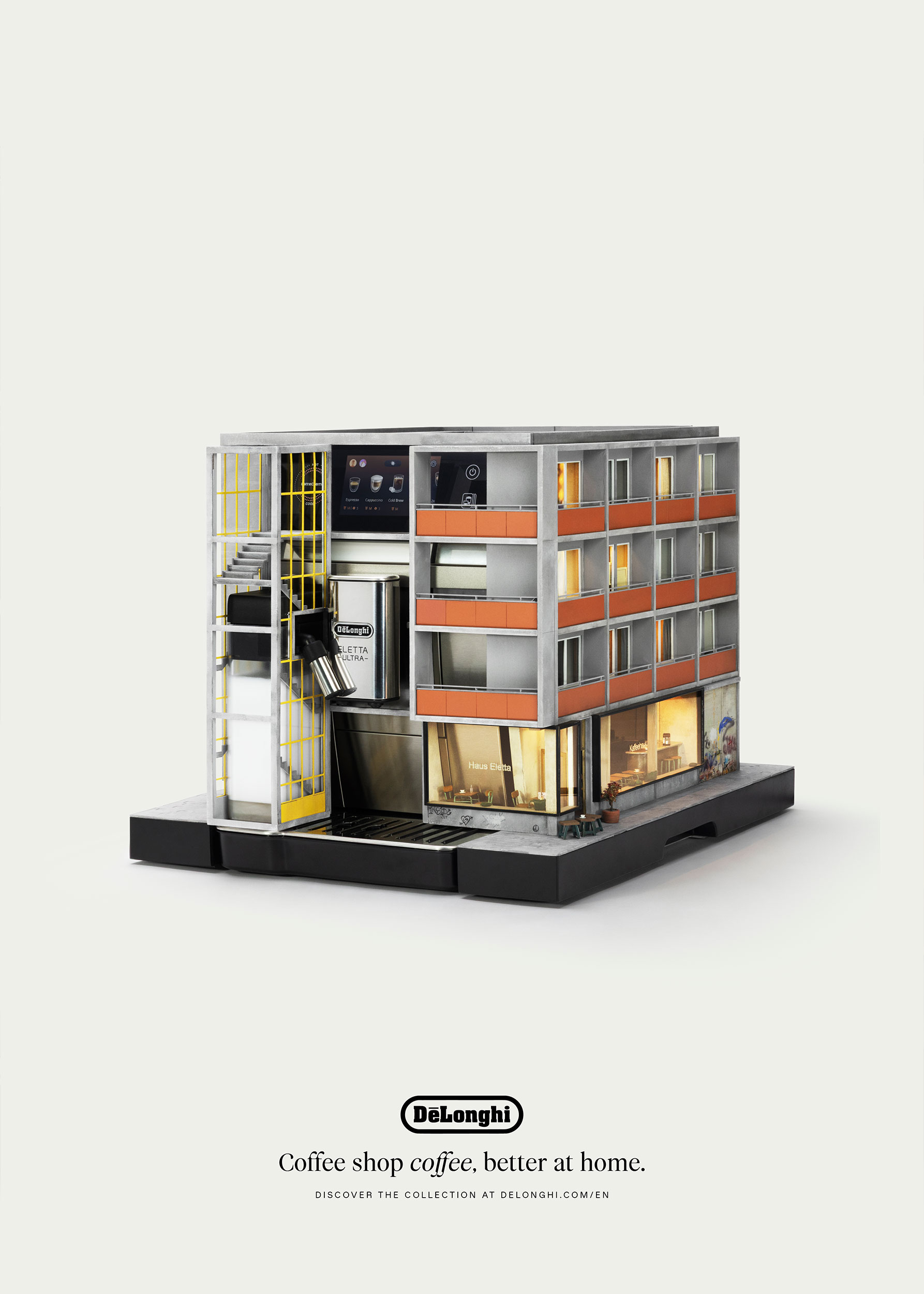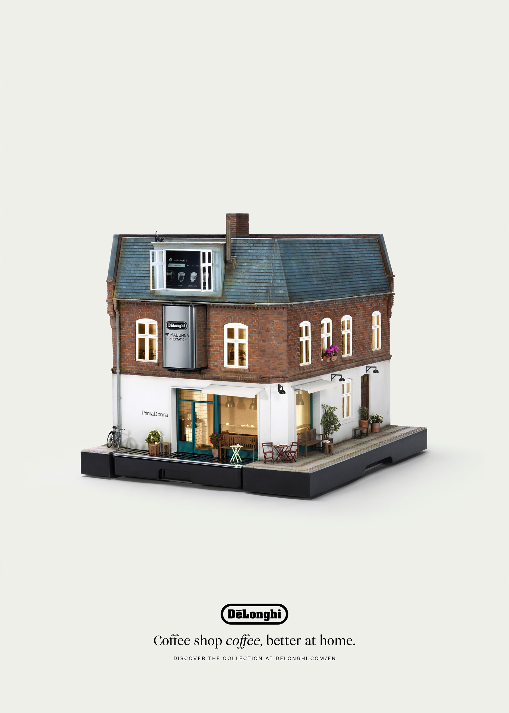 Za projekt odpowiada Simon Weisse, twórca modeli do filmów Wesa Andersona, który przeniósł swoje doświadczenie z planów filmowych na niezwykle precyzyjne detale, takie jak maleńkie filiżanki czy kawiarniane zasłony. Fasady miniaturowych lokali zostały zaprojektowane wokół automatycznych ekspresów De’Longhi, a funkcjonalne elementy, jak otwierane okna, umożliwiają dostęp do ekranów operacyjnych urządzeń. Według Weissego miniatury pozwalają uzyskać poziom precyzji i realizmu, który trudno osiągnąć za pomocą obrazów generowanych komputerowo.