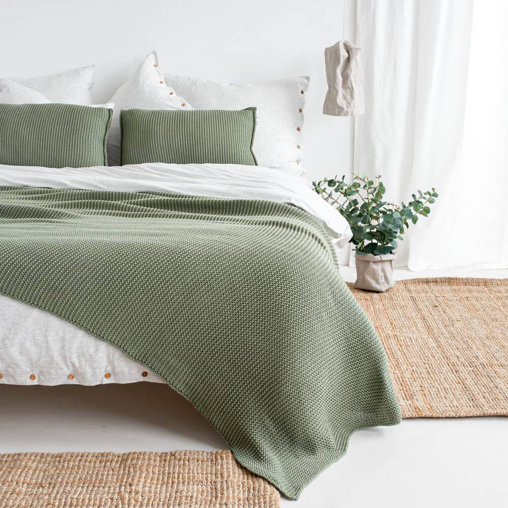 Naturalna bawełna z recyklingu i kolory inspirowane naturą wniosą letni klimat do Twojej sypialni. Nawet jeśli mieszkasz w mieście, kolekcja LENIWY PORANEK marki moyha wprowadzi spokój do Twojego wnętrza i poczujesz się, jak na wakacjach.