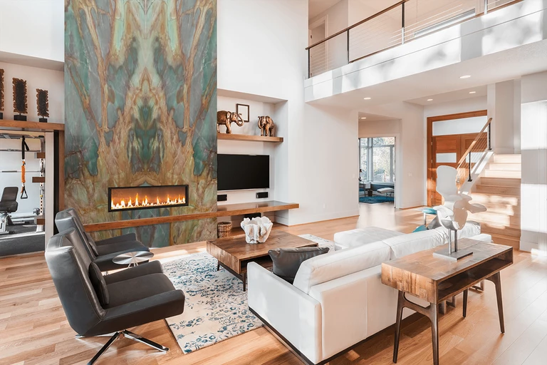 Wspomniany kwarcyt warto poznać bliżej. Choć wyglądem przypomina delikatny marmur, to kamień ten ma bardzo dużą wytrzymałość. Jest równie twardy jak granit, niepodatny na zarysowanie czy ścieranie, odporny nawet na skrajne czynniki atmosferyczne, od mrozu po żar. Z jednej strony świetnie sprawdza się więc na tarasach i balkonach, z drugiej jako materiał wykończeniowy kominków czy biokominków. Doskonale nadaje się również na blaty zabudowy kuchennej albo mebli, parapety, okładziny ścienne, ale także posadzki, schody, a nawet elewacje budynków.