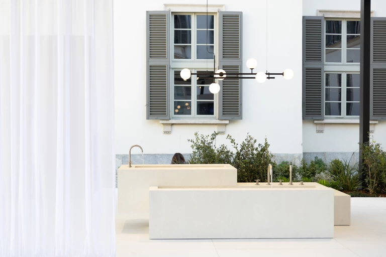 Opierając się na koncepcji „Aquatecture” – połączenia wody i architektury – instalacja GROHE SPA na dziedzińcu Palazzo Reale odsłania cztery przestrzenie, które podkreślają znaczenie wody w architekturze oraz korzyści zdrowotne i poczucie dobrostanu, jakie to połączenie ze sobą niesie. Zaprojektowana przez wewnętrzny zespół LIXIL Global Design and Brand Identity, instalacja „Aquatecture” jest formą hołdu dla historii budynku, w którą wpleciono współczesną koncepcję GROHE SPA „Salus per aquam". Inspiracją dla projektantów był przede wszystkim dawny ogród na dziedzińcu oraz tematyka tegorocznego tygodnia designu w Mediolanie: „Materia Natura". Dlatego wystawa marki GROHE umiejętnie łączy naturę i architekturę w przestrzeniach pełnych inspiracji.