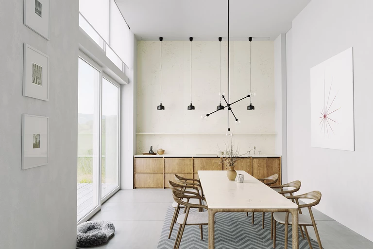 Kolor Noble Villa sprawdzi się w wielu stylistycznych kombinacjach, jednak najlepiej zaprezentuje się obok bieli i wszelkich odcieni szarości. Nieoczywistym połączeniem będzie zestawienie go na przykład z czarnymi elementami – lampami czy obrazami w ciemnej ramie. Subtelność dekoru Noble Villa pozwoli także na małe szaleństwo w kwestii łącznia wzorów – naturalne słoje drewna czy geometryczne akcenty będą stanowiły dobre dopełnienie nowego wzoru konglomeratu kwarcytowego.
