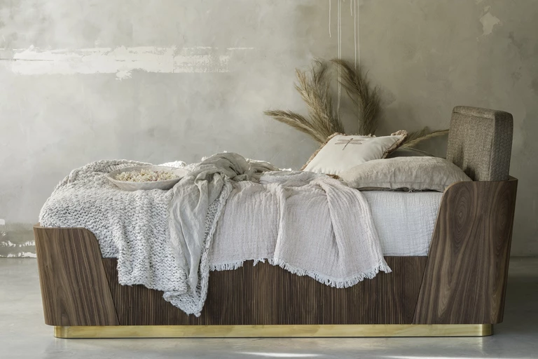 Jak przyznaje Roland Stańczyk, zaprojektowanie pięknego, a przy tym wygodnego łóżka jest wyzwaniem. Komfortowe łóżko powinno być szerokie, a zbliżona do kwadratu, niska forma ma trudne proporcje. Bartłomiej Świtkowski, właściciel H&H Solutions dodatkowo podkreśla, że „łóżko tej klasy powinno mieć kontynentalną, sprężynowaną podstawę pod materac. Zależało nam, by jakość snu była sprawą priorytetową“. Wykonanie prototypu powierzono doświadczonej i sprawdzonej firmie stolarskiej. W trakcie prac projektant konsultował z technologiem istotne detale, takie jak układ forniru orzechowego w matowym wykończeniu oraz sposób montażu dużego mebla, który pozwoliłby go rozebrać przy transporcie. Gdy prototyp był już gotowy, Bartłomiej Świtkowski wraz z projektantem dokonali finalnych korekt, dzięki czemu łóżko wykończone jest perfekcyjnie nawet od wewnętrznej, niewidocznej strony.