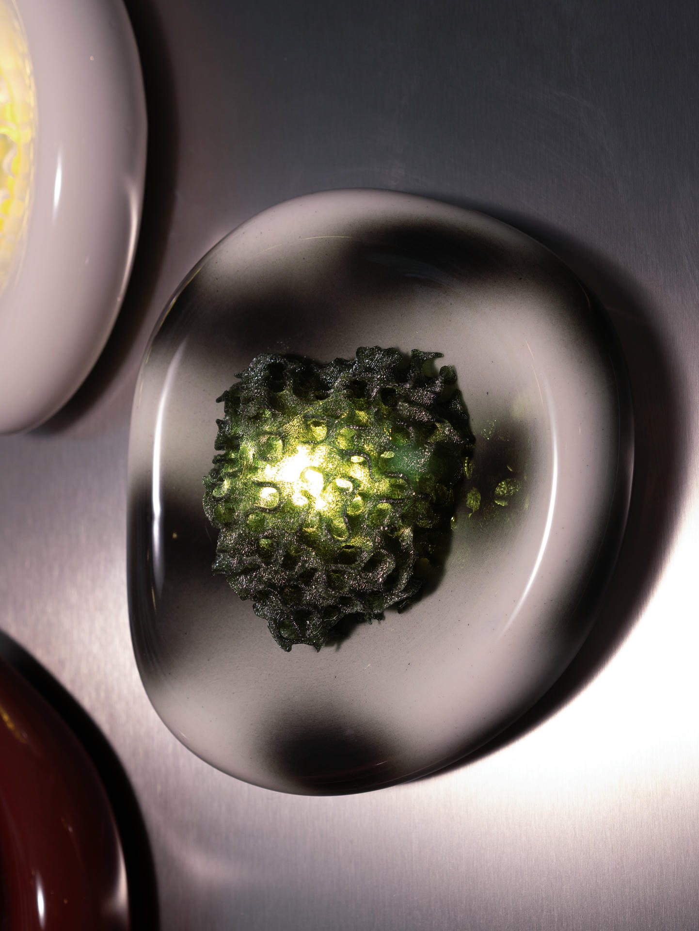 Dzięki organicznym liniom i świetlnym przejściom kolekcja wpisuje się w charakter pracowni, w której techniczne rzemiosło spotyka się z eksperymentem materiałowym i myśleniem o świetle jako współtwórcy nastroju.