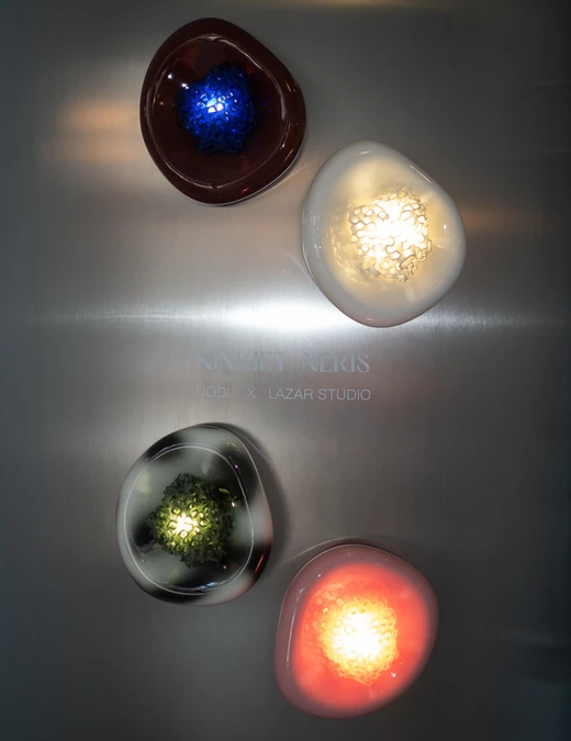 Premiera przestrzeni zbiega się z prezentacją nowego obiektu Nodi, stworzonego we współpracy z Lazar Studio. Kolekcja kinkietów Neris jest połączeniem porcelany i druku 3D. Neris, której nazwa pochodzi od nereid – nimf wodnych z mitologii greckiej – to forma na pograniczu funkcjonalności i rzeźby, inspirowana ruchem wody i strukturą rafy koralowej.