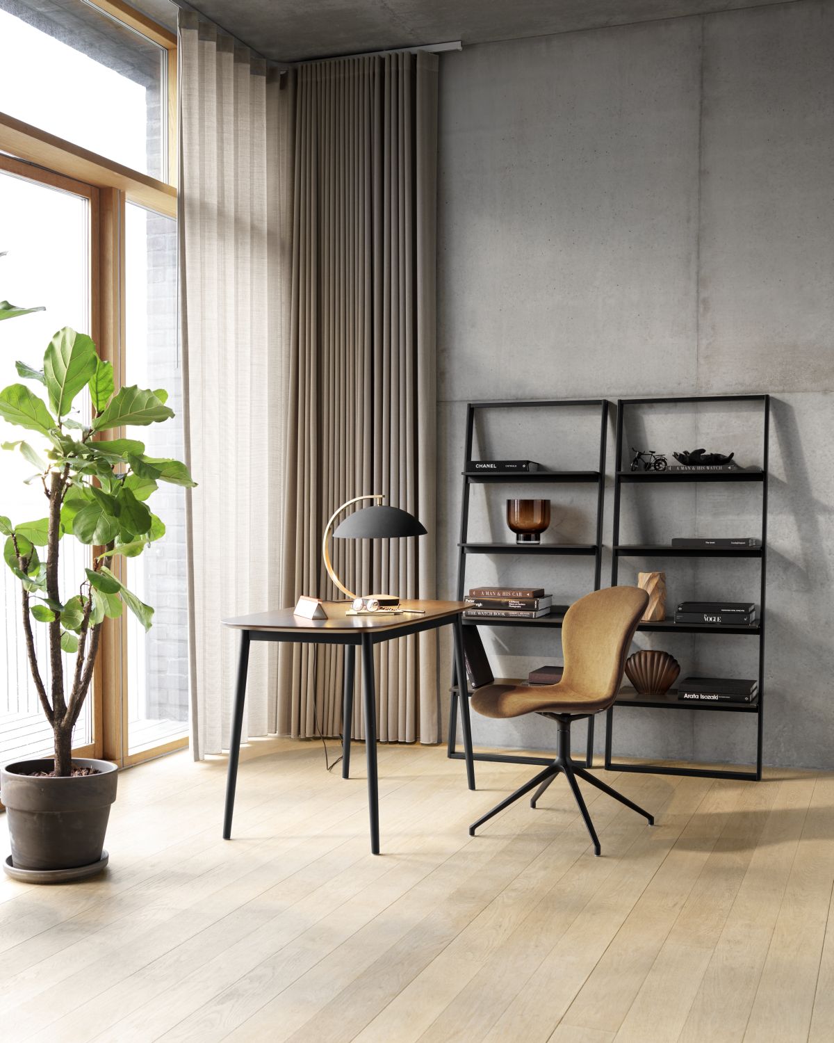 Łącząc duży blat oraz miejsce do przechowywania, biurko Kingston zawiera w sobie wszystkie niezbędne elementy do zapewnienia maksymalnego komfortu pracy biurowej. Projekt charakteryzuje metalowa rama oraz zintegrowana szuflada, w której możemy schować niezbędne przybory. Forma mebla wpisuje się w lekką, nordycką stylistykę, poprzez organiczne linie oraz lekko pochylone nogi. Biurko dostępne będzie w kilku wykończeniach.