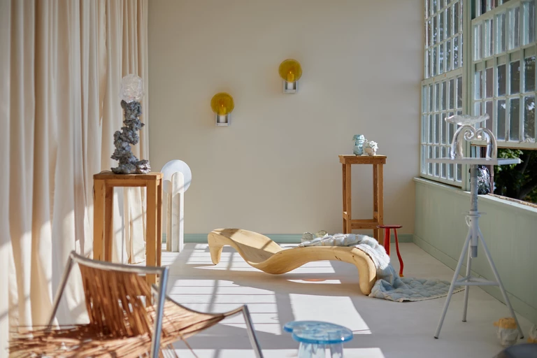 W historycznym pawilonie orłowskiego Kurhausu prezentujemy prace tworzące małą architekturę współczesnego domu kuracyjnego: szezlongi i fotele wypoczynkowe, stoliki kawowe, lampy, obiekty ze szkła, porcelany, mydła, a nawet ogrodową instalację prysznicową; związane z ideą odpoczynku oraz rytuałami regeneracji i oczyszczania, celebracji nudy; opływowe w kształtach, wyrastające z morskiego pejzażu, reinterpretujące jego atrybuty. Powstające w kontemplacyjnym procesie tkania, formowania, klejenia, w kontekście miejsca o tak silnym dziedzictwie - ujawniają się jako medium spowolnienia, ponownego osadzenia.