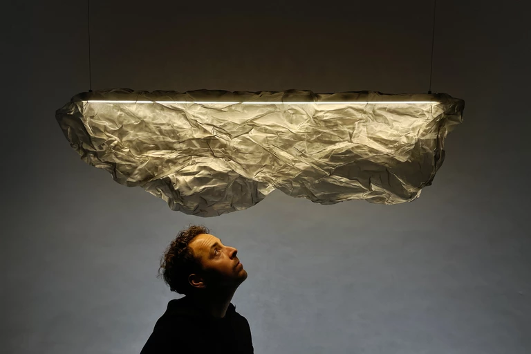 W wyniku ich pracy powstała seria oryginalnych lamp, w których główną rolę gra tkanina. Dzięki temu zabiegowi obiekty przypominają wysokiej klasy ubrania z kolekcji haute couture. Użyty materiał to gęsto pleciona stalowa siatka w dwóch odsłonach – złotej i srebrnej. Tkanina osłania żarówki, zmiękczając promienie generowanego przez nie światła. „Doszliśmy do punktu zabawnego, w którym nieco przewrotnie światło pozostało w cieniu. Otrzymuje zadanie niezmiernie istotne, jednak nie pierwszorzędne” – podkreśla Jacek Rypuła.