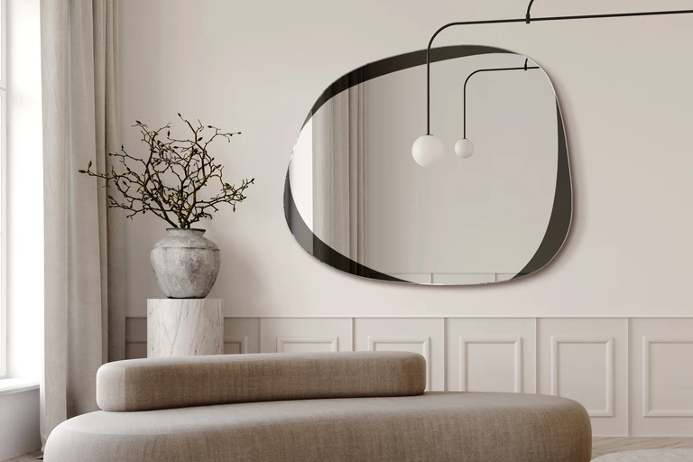 Organiczne formy mebli i dodatków to obecnie jeden z wiodących trendów we wnętrzach. Nie bez powodu. Nawiązujące do form występujących w naturze, opływowe kształty bez ostrych kantów wywołują poczucie komfortu i tworzą przytulną atmosferę we wnętrzach. Nieregularny kształt luster z kolekcji ISLE znakomicie wpisuje się w ten organiczny trend. Składają się z dwóch nałożonych na siebie, nieregularnych kształtów. W miejscach, gdzie jeden z nich odsłania drugi, otrzymujemy efekt nieoczywistej oprawy.