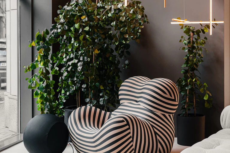 Dwupoziomowy showroom o powierzchni 500 m2 został zlokalizowany w najbardziej prestiżowej części polskiej stolicy. Można tu znaleźć szeroki wybór luksusowych kolekcji Grupy B&B Italia, w tym Maxalto (górne piętro showroomu) oraz B&B Italia Outdoor. Ekspozycja przy Mokotowskiej 49 to propozycje meblowe światowej sławy projektantów, takich jak Mario Bellini, Antonio Citterio, Piero Lissoni czy Gaetano Pesce. Najwyższą jakość, a także kunszt włoskiego rzemiosła, widać tu na każdym kroku. Wszystkie znajdujące się w showroomie obiekty zostały z namysłem wybrane z szerokiego portfolio B&B Italia, a następnie zaaranżowane z troską o najmniejszy detal. Jest przy tym nowocześnie i przestronnie, a meblom towarzyszą zjawiskowe lampy i efektowne rośliny.