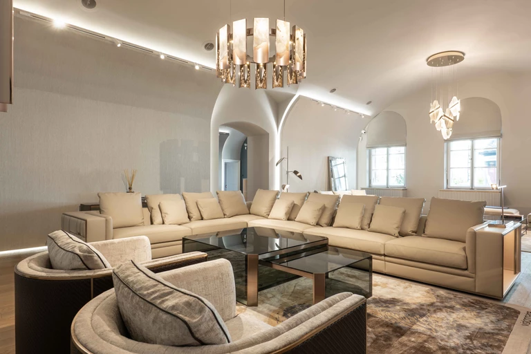 Flagowe produkty marki świetnie komponują się z zaokrąglonymi ścianami, które dopełniają łukowe sufity. Systemy oświetlenia LED podkreślają poszczególne elementy wnętrza, tworząc relaksujący, przyjemny klimat.