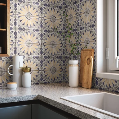 Zapomnij o skromnym kafelkowym backsplashu. W kuchniach AD 2026 płytki „wylewają” się na całe pomieszczenie. Projektanci coraz śmielej obkładają nimi całe wyspy kuchenne, boki szafek, a nawet wnęki okienne. Tile drenching w kuchni to manifestacja użytkowego piękna. Wykorzystanie drobnej mozaiki lub wielkoformatowych spieków na wszystkich płaszczyznach sprawia, że kuchnia staje się niezwykle spójna wizualnie, a przy tym niemal niezniszczalna. To idealne rozwiązanie dla tych, którzy kochają gotować, ale nienawidzą martwić się o zachlapaną farbę na ścianie - tutaj wszystko jest odporne, trwałe i niesamowicie stylowe.