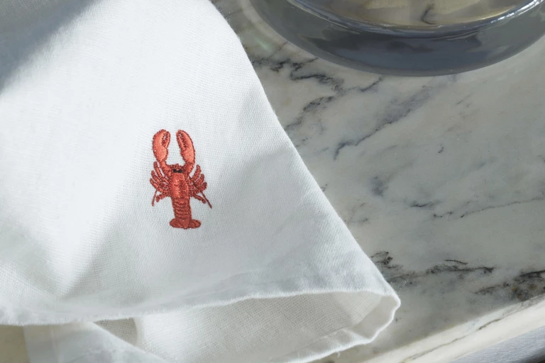 Z kolei ta ściereczka marki Normann Copenhagen to świetna pozycja dla tych, którzy lubią wzornictwo z morskim motywem, ale preferują je w wersji minimalistycznej. Naniesiony na materiał haftowany, czerwony homar nie imponuje może wielkością, ale niewątpliwie urzeka wyglądem, przez cały rok przypominając o beztroskich, wakacyjnych chwilach.