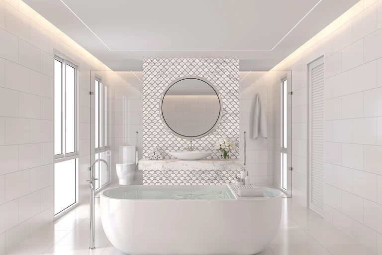 Mozaika Flabellum Marble Mat do złudzenia przypomina marmur, ale ze względu na swoje właściwości w przeciwieństwie do delikatnego kamienia jest odporna na zabrudzenia czy  wszelkie plamy co istotne jest w codziennym użytkowaniu.