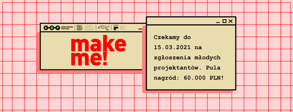 Rozpoczęło się przyjmowanie zgłoszeń do kolejnej edycji organizowanego przez Łódź Design Festival międzynarodowego konkursu dla młodych projektantów make me! Zwycięzcy zostaną ogłoszeni podczas najbliższej edycji festiwalu, która wystartuje w maju 2021 roku. Trafią do nich nagrody o łącznej wartości aż 60.000 zł!