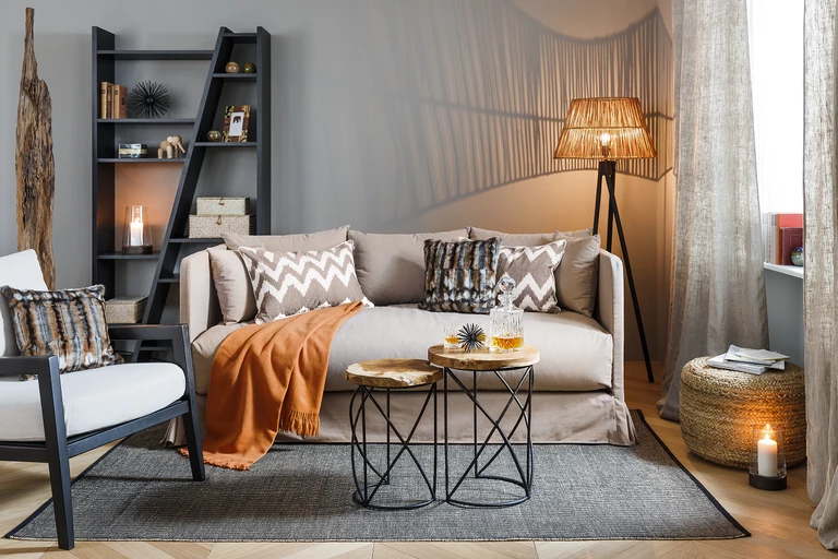 Afrykańską aranżację świetnie dopełnią dodatki, które wyglądają jakby zostały przywiezione z dalekich podróży. Na ścianie powieś mapę, a na stoliku połóż kompas, lupę oraz postaw globus i gotowe. Aby zbudować klimat safari, nie potrzeba rewolucyjnych zmian w wystroju.