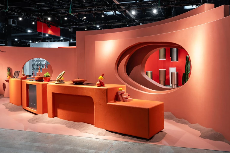 Podczas Targów Warsaw Home&Contract 2023 uwagę zwracało stoisko Ciarko Design, które zostało zainspirowane pustynią. Przestrzeń wypełniono miękkimi kształtami, przypominającymi fałdy piachu, oraz odcieniami czerwieni, charakterystycznymi dla pustynnego krajobrazu.