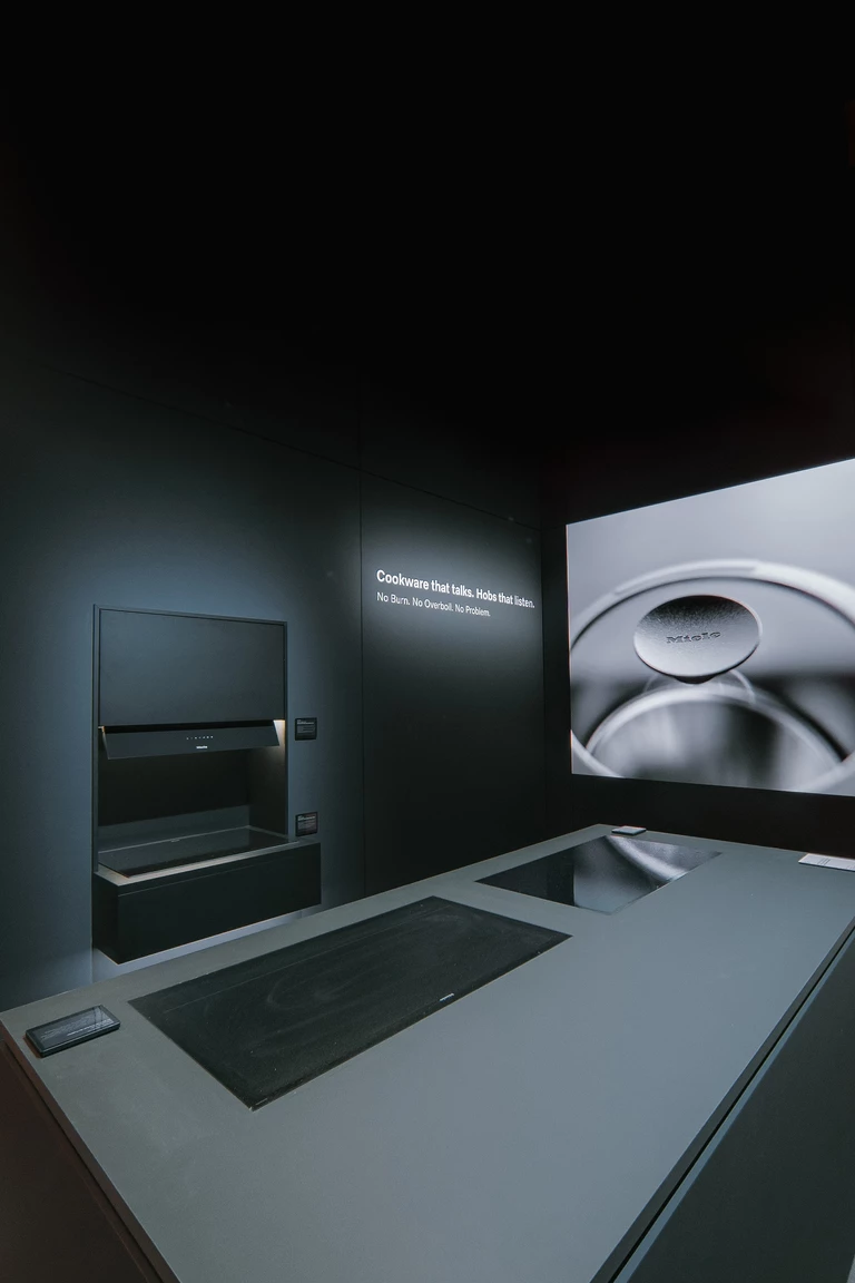 Zamiast klasycznej prezentacji urządzeń Miele zaproponowało formułę angażującą: zwiedzający mogli zobaczyć, jak kuchnia i jej sprzęty wpisują się w codzienność, tworząc spójny ekosystem łączący to, co fizyczne, z tym, co cyfrowe.
