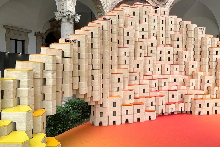 Instalacja „Inicjowanie zmian” (Sparking Change), zaprojektowana przez Mario Cucinella Architects, inspirowana była uruchomieniem pierwszego na świecie elektrycznego pieca tunelowego w zakładzie produkcyjnym Grupy Roca w Gmunden w Austrii. Projekt pokazał pozytywny wpływ na środowisko tego pionierskiego rozwiązania, doskonale wpisując się w zasady cyrkularności oraz dekarbonizacji.