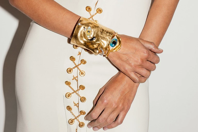 Harrods, jako wyłączny dystrybutor Schiaparelli w Wielkiej Brytanii, konsekwentnie buduje wokół marki scenografię bliższą galerii niż klasycznemu działowi luksusowej mody. W oknach pojawiają się instalacje inspirowane kodami domu - od złotych anatomicznych detali po motyw taśmy krawieckiej i klucza - nawiązujące do paryskich kolekcji Daniela Roseberry’ego i dialogu mody z surrealizmem, który V&A rozpisuje na ponad 200 obiektów. W środku czeka butik oraz ekspozycja kolekcji wiosna/lato 2026, projektowanej jak miniwystawa: z dzianinami trompe‑l’œil, rzeźbiarskimi ramionami i biżuterią przywołującą dawne, teatralne projekty Elsy.