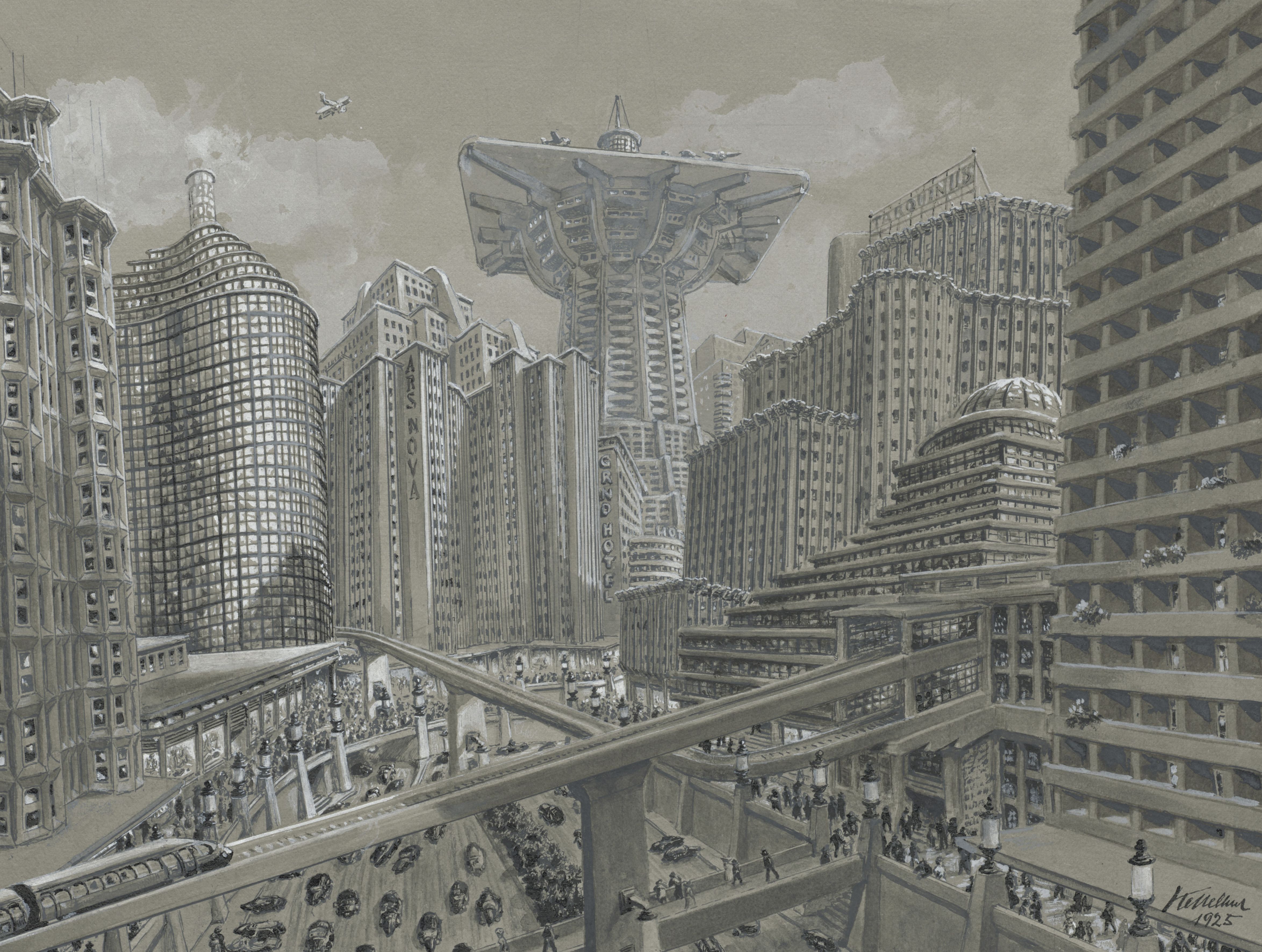 Gatunek science fiction w literaturze pojawił się już w XIX wieku, gdy Mary Shelley i Jules Verne zaczęli opisywać techniczne wizje przyszłości oraz związane z nimi dylematy. Z czasem motywy te przeniosły się do filmu. Wystawa przypomina o jednym z jego najwcześniejszych przykładów – „Podróży na Księżyc” Georgesa Mélièsa. W kolejnych dekadach science fiction rozwijało się w literaturze, grafice i komiksie, zdobywając popularność dzięki autorom takim jak Isaac Asimov, H.G. Wells czy Stanisław Lem.