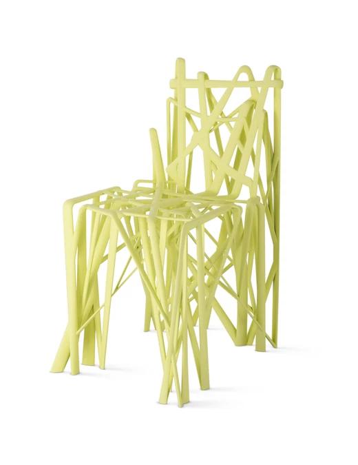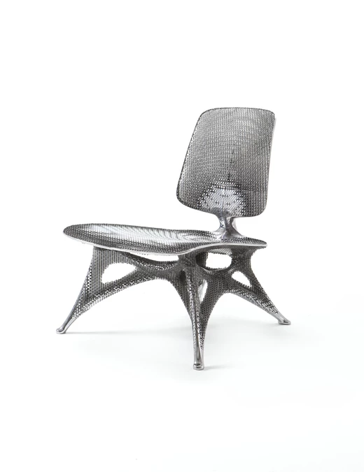 Zaprezentowane są m.in. jego „Shipping Series” oraz Hortensia Chair (2018) – zabawny, a zarazem futurystyczny obiekt, który artysta najpierw stworzył jako NFT, a dopiero później jako realny mebel.