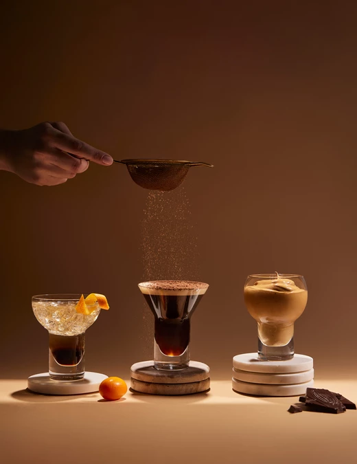 Pękata czarka szklanki SHAKE N⁰3 została oparta na stabilnej nóżce. Taka kompozycja wspaniale sprawdzi się przy warstwowych koktajlach z dużą ilością lodu na górze.