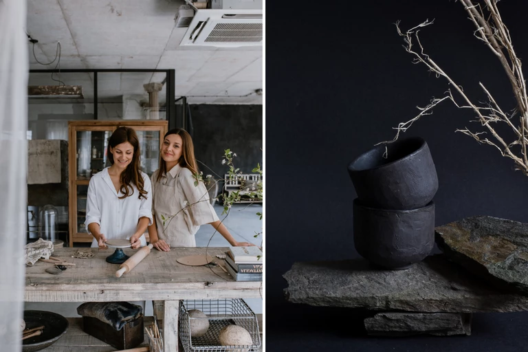 Należą do nich również siostry Ewa i Marta Krężelewskie, dla których nieprzewidywalne efekty dymne, na trwałe odciskające się na powierzchni naczyń, często zastępują szkliwa i farby. To właśnie efemeryczność smug dymu, piękno zawarte w elementach spopielonych i nieregularnych zainspirowały je do stworzenia pracowni ceramicznej Smugi Studio. Po latach pracy biurowej w dużych firmach, mieszkania w różnych miastach i krajach siostry zdecydowały połączyć siły i przekształcić pasję w zawód, otwierając na początku 2023 roku pracownię ceramiczną pod Warszawą.