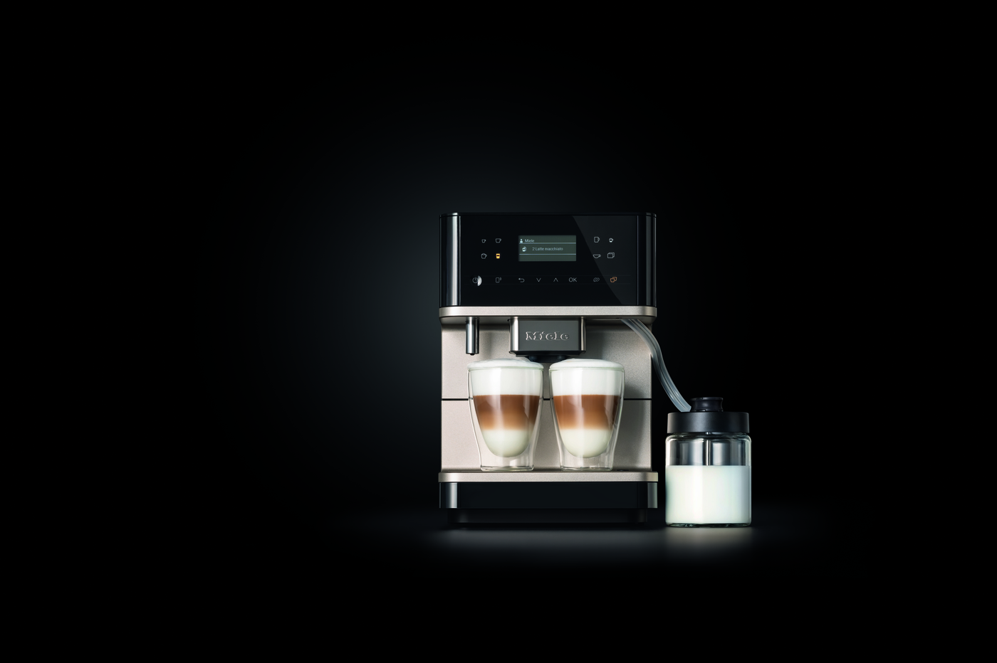 Mleko spieniane jest podwójnie dzięki podwójnej parze użytej przy przyrządzaniu kawy. Pianka jest gorąca i ma doskonałą konsystencję niezależnie od temperatury mleka, z którego korzystasz. Nowy model CM6 ma teraz szklany pojemnik na mleko – taki sam, jaki do tej pory miały tylko ekspresy Miele do zabudowy. Na bieżąco widzisz, ile mleka jest w środku i uzupełniasz je w razie potrzeby, zanim zaczniesz przygotowywać kawę, a po opróżnieniu możesz umyć pojemnik w zmywarce.