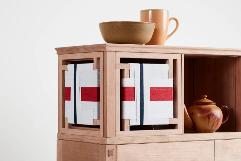 Tworząc koncepcję swojej szafki na herbatę Christoph Kurzman zainspirował się pracą projektanta tkanin – Jo Elbourne'a, czerpiąc wzór graficznego kształtu z tradycyjnej japońskiej techniki układania mat Tatami. Kurzman zdecydował się na wykorzystanie wiśni ze względu na jej subtelne ciepło, które uzupełnia tkane panele.