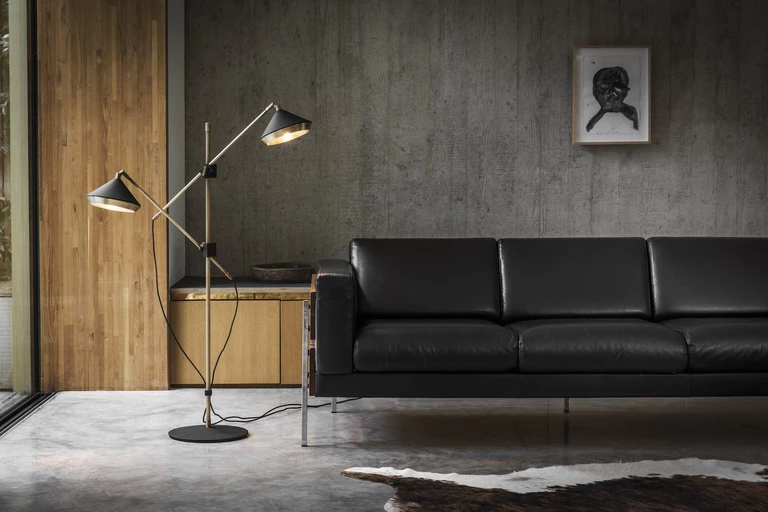Przyjrzyjmy się wielokrotnie nagradzanej kolekcji Colt, na którą składają się lampy stojące, wiszące i kinkiety. To, co je wyróżnia, to zestawienie miękkich łuków z kanciastymi liniami. Elegancka, laserowo wycinana podstawa z mosiądzu podtrzymuje dyfuzor z mlecznego szkła, a światło nadaje pomieszczeniom nowoczesny, miejski poblask. Przenika ono zarówno przez górną, jak i dolną część obrobionej maszynowo, owalnej obudowy z mosiądzu.