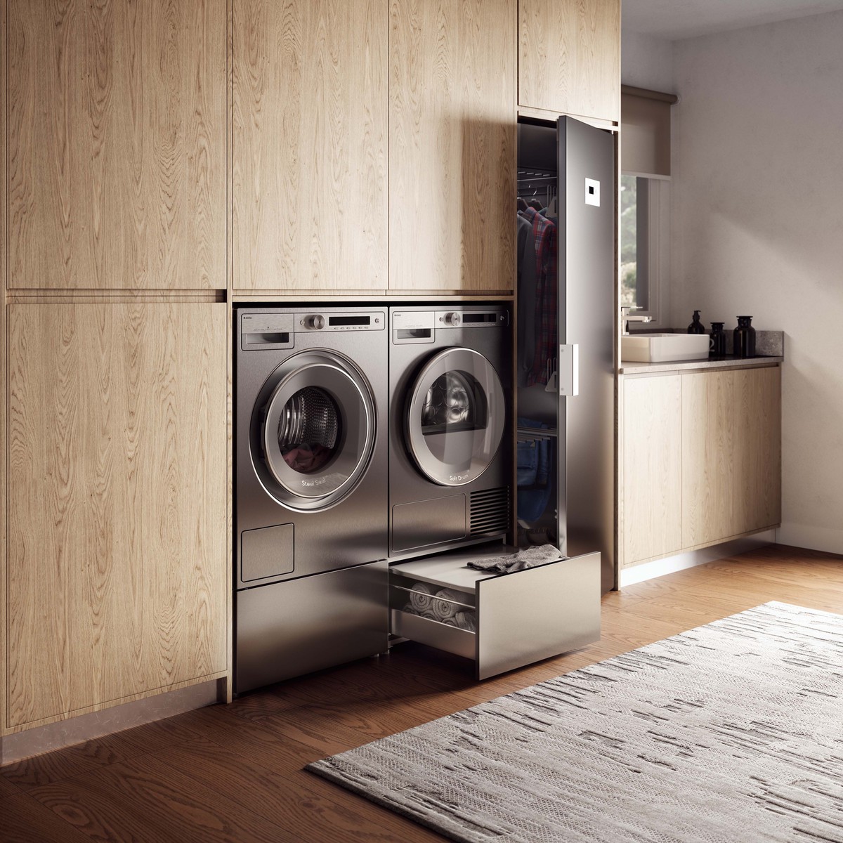 Przemyślana organizacja sprawia, że cały wsad trafia do estetycznego, zamkniętego urządzenia, nie zajmując nadmiaru przestrzeni. ASKO odpowiada na realne potrzeby domowników, oferując praktyczne akcesoria. Wentylowane szafy suszące wykorzystują ogrzane powietrze z zewnątrz, które przepływa przez szafę i wilgotne ubrania, po czym jest odprowadzane kanałem wywiewnym.