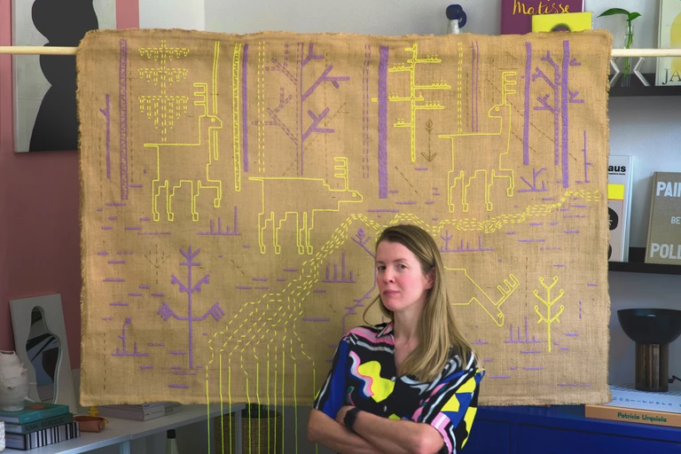 Kolekcję „Crafting Connections” tworzą ręcznie szyte lub haftowane obrazy w formie kilimów do dekoracji ścian. Niektóre obiekty projektantka połączyła też z malarskimi elementami oraz zaprojektowanymi, współczesnymi motywami, inspirowanymi lokalną tradycją północno-wschodnich terenów Polski.