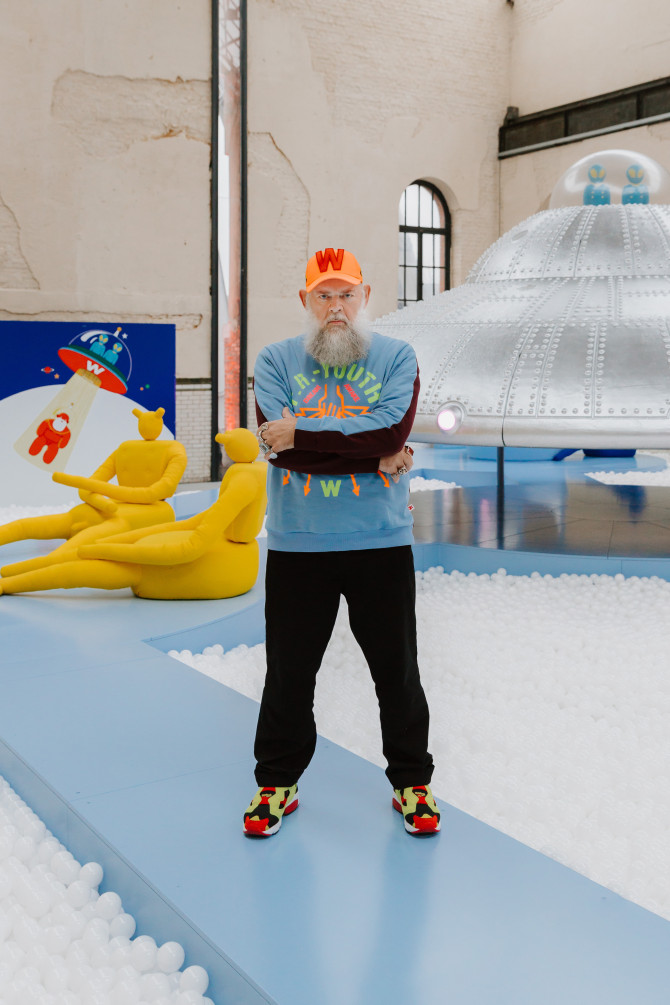 Walter Van Beirendonck, filar legendarnej „Szóstki z Antwerpii” i wieloletni dyrektor tamtejszej Królewskiej Akademii Sztuk Pięknych, kojarzony jest głównie z kolekcjami mody. Tymczasem Beirendonck od dekad eksploruje tematy tożsamości, różnorodności i wolności poprzez silny, graficzny język wizualny. W Genk projektant przekłada te motywy na skalę architektoniczną, wprowadzając do postindustrialnego pejzażu swoją charakterystyczną chłopackość, kolor, humor i swobodny, zrozumiały dla wszystkich język zabawy.