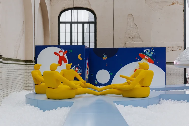 Koncepcja „Welcome Little Stranger” stanowi radykalną alternatywę dla cyfrowej rozrywki, stawiając na stymulację dziecięcej wyobraźni. We współpracy z Emmą Ribbens, projektantką społeczną i laureatką nagrody Henry’ego Van de Velde, Beirendonck włączył najmłodszą lokalną społeczność w proces twórczy poprzez udział w licznych, budujących kosmiczną narrację warsztatach. Motyw istot pozaziemskich stał się narzędziem do badania poczucia przynależności w przestrzeni publicznej.