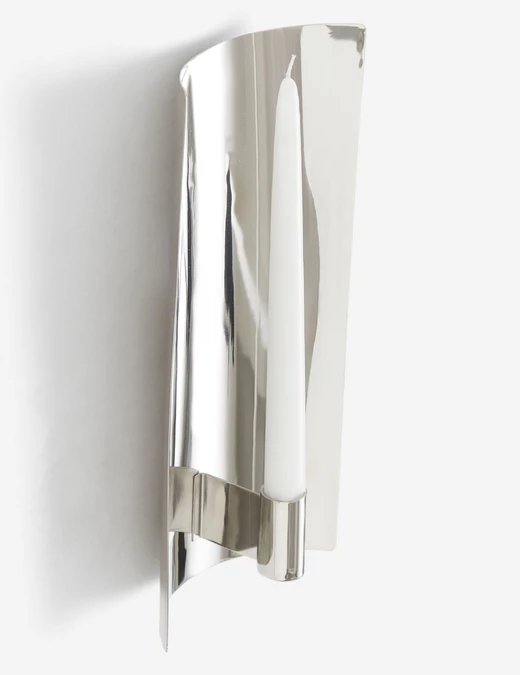W modną stylistykę na chromowaną stal wpisuje kinkiet na świeczkę od H&M Home. Jego forma nawiązuje do trendów z lat 70. a nonszalancko wygięta stal chroni ścianę i wyłapuje bliki światła.