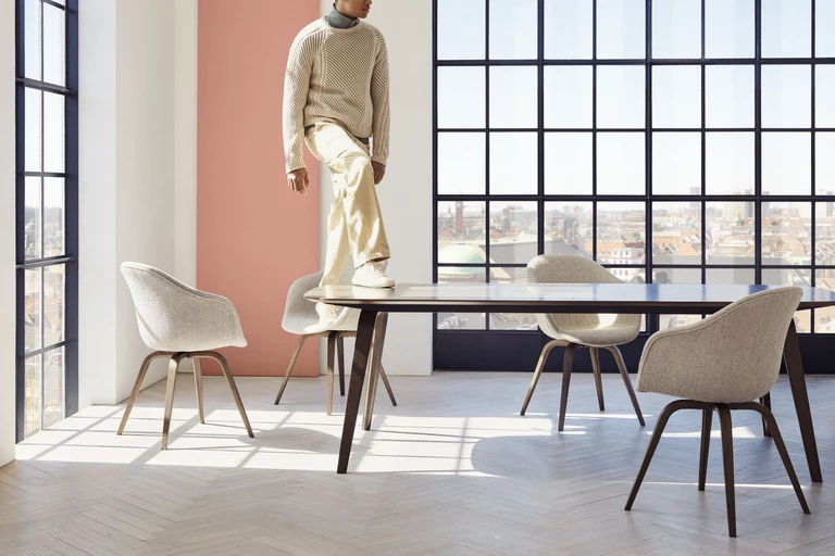 Podobnie minimalistyczny i elegancki stół do jadalni Hauge. Zachwyca on organicznymi kształtami i delikatnymi zaokrągleniami, dzięki czemu nigdy nie wyjdzie z mody. Pięknie wyważony w swych proporcjach, po mistrzowsku łączy duńską funkcjonalność i formę.