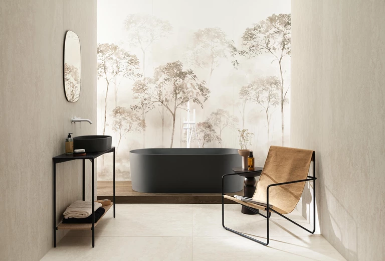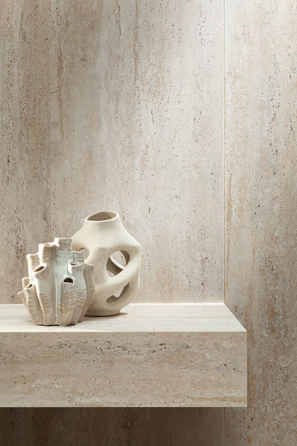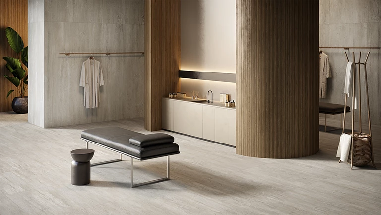 Travertino to najbardziej klasyczna interpretacja tego kamienia inspirowana formacjami trawertynowymi z Parku Narodowego Yellowstone. W kolekcji Travertigo zastosowano technologię Sensory 3D, dzięki której struktura kamienia staje się trójwymiarowa i wyczuwalna w dotyku, dając wrażenie kontaktu z prawdziwą skałą. Natomiast Holiday Travertine to delikatniejsza, satynowa interpretacja trawertynu dla wnętrz, w których liczy się lekkość, światło i subtelność detalu.