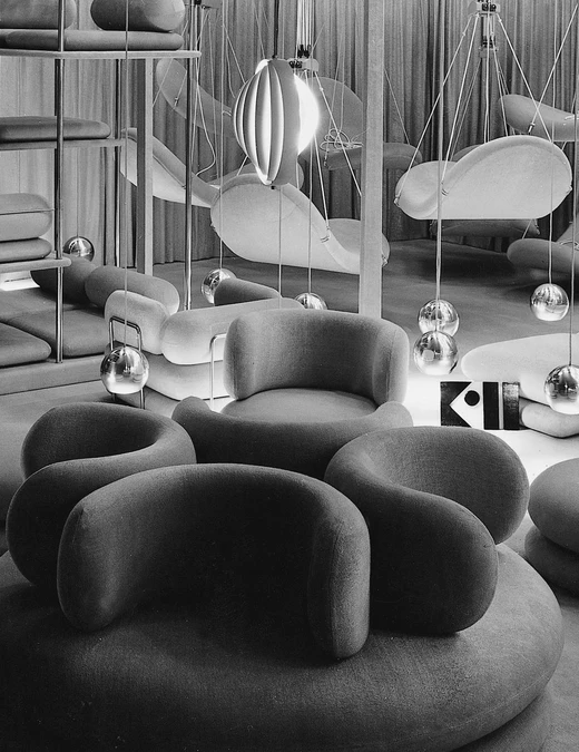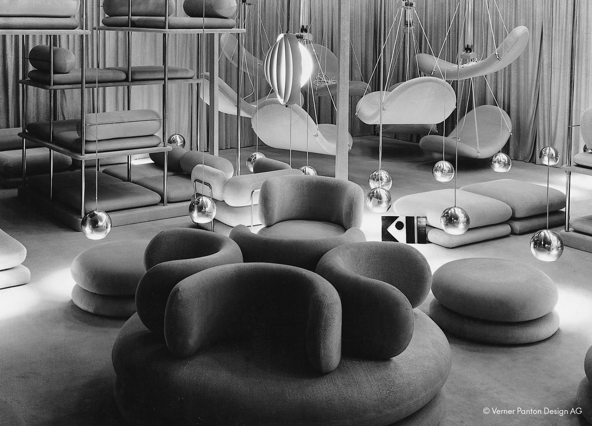 „Flying Chairs”, Multi-Level Lounger oraz meble siedziskowe Vernera Pantona, Targi Meblowe w Kolonii, 1964 © Verner Panton Design AG