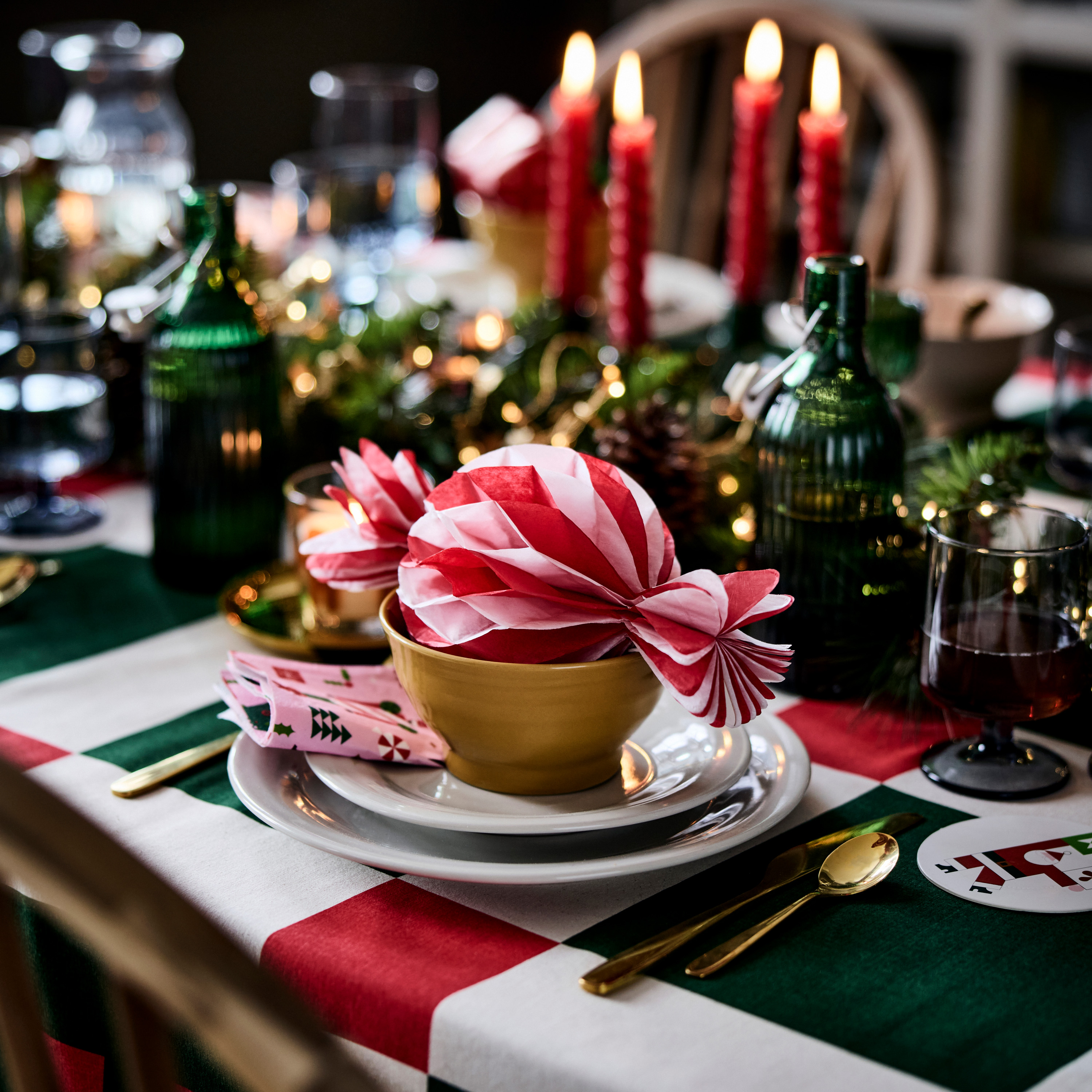 W wyraźnym kontraście, motyw „Kolorowych Świąt” czerpie z tradycji, dodając jej energii. We współpracy z artystką Eveliną Kroon, IKEA nasyca znane motywy świąteczne współczesną dynamiką poprzez zabawę skalą i odważne zestawienia wzorów.