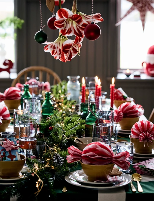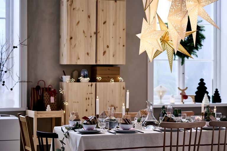 Wierna swoim korzeniom, IKEA wplata skandynawskie tradycje w całe kolekcje. Ikoniczny julbock (świąteczny kozioł) pojawia się jako dekoracje VINTERFINT, wykonane w zrównoważony sposób z resztek produkcyjnych. Postacie przypominające Nisse lub Tomte, folklorystycznych opiekunów domu, dodają tradycyjnego uroku. Zwyczaj oświetlania okien podczas ciemnych zimowych miesięcy znajduje odzwierciedlenie w bogatej ofercie gwiazd i lamp STRÅLA, zaprojektowanych, by rzucać ciepły, zapraszający blask. Dopełnieniem wystroju jest kolekcja spożywcza VINTERSAGA, oferująca tradycyjne szwedzkie smakołyki, takie jak pepparkakor (pierniczki) i glögg (grzany napój owocowy), będące nieodzownymi elementami skandynawskich świątecznych spotkań.