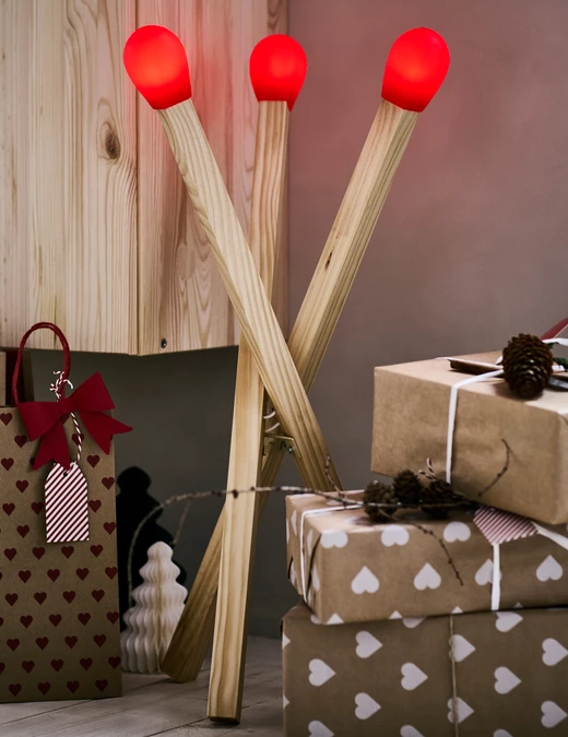Projektant Lukas Bazle zainspirował się szwedzką baśnią o Nilsie Paluszku, tworząc efektowną lampę podłogową STRÅLA, przypominającą przewymiarowane zapałki. „Zapach krzesanych zapałek przywodzi na myśl Boże Narodzenie” - dzieli się Bazle, łącząc projekt z przytulną atmosferą zimowych wieczorów przy świecach. Marta Krupińska wnosi nutę fantazji pojemnikami VINTERFINT w kształcie bałwanków i Mikołajów, przekształcając przechowywanie w urocze obiekty dekoracyjne. Ilustratorka Katie Kirk dodaje zabawne grafiki do takich przedmiotów jak foremki do ciastek VINTERFINT i papier do pakowania, mając na celu uczynienie świątecznych przygotowań „przyjemniejszymi i mniej stresującymi”. Nawet wszechobecna niebieska torba IKEA otrzymuje świąteczną metamorfozę, przeprojektowana przez Evelinę Kroon w świąteczną kratę.