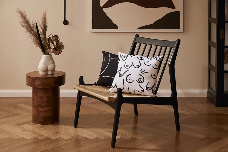 Wystrój wnętrz może również oddać głos tego typu wartościom i wizjom. Przykład? Linia poszewek na poduszki Westwing Collection, z których część powstała we współpracy z niemiecką ilustratorką Kerą Till. Przedstawiają one kobiece sylwetki, ramiona otulające ciało, rozczochrane włosy i wszystko, co przypomina nam, że piękno tkwi w niedoskonałościach. A to nie koniec, bo projektanci z coraz większą odwagą inspirują się kobiecym ciałem, a stworzone przez nich wazony, obrazy i rzeźby stają się w ten sposób nośnikami wiadomości, które należy obserwować na co dzień w otaczającej nas przestrzeni.