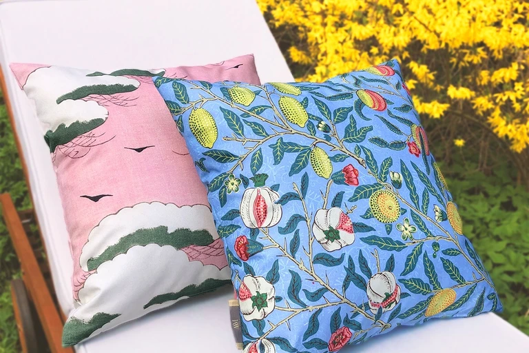 Nam najbardziej spodobały się ich poduszki ozdobione wzorami wiktoriańskiego artysty William'a Morris'a. Od góry – poduszka „Egzotyczne owoce” ze wzorem nasyconym radosnymi kolorami, poduszka „James” w florystyczny wzór z przeplatającymi się błękitami, zieleniami i pomarańczami w różnych odcieniach z centralnym liściem akantu, a także poduszka „Złodziej truskawek” we wzór przedstawiający drozdy kradnące truskawki z ogrodu artysty.