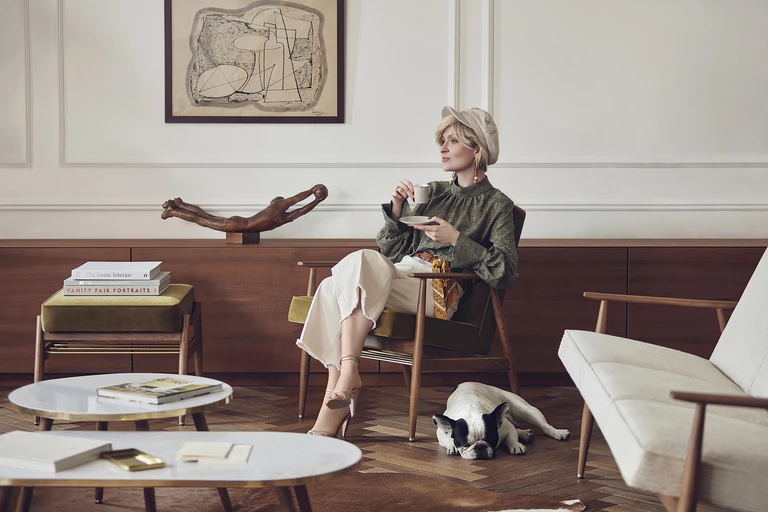 Wywiad z Marietą Żukowską o polskim designie i urządzaniu wnętrz. Marieta Żukowska to nie tylko jedna z najlepiej ubranych polskich aktorek, ale także miłośniczka polskiej sztuki i designu i ambasadorka polskiej marki designerskiej 366 Concept - Retro Furniture. W Wasze ręce przekazujemy zdjęcia foteli 366 w wersji klasycznej i metal, foteli FOX i krzeseł 200-190, uchwyconych w sesji z jej udziałem na warszawskim Rozbracie, a z Marietą rozmawiamy o jej zamiłowaniu do polskich wzorów, o ulubionych kolorach, teksturach i meblach, a także o tym, jak urządziła swoje nowe mieszkanie na Powiślu w Warszawie.