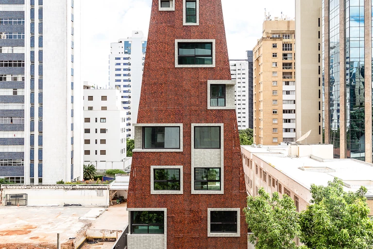 This nine-story building is located on a fairly narrow plot of land - its width is only 12.7 meters. Designing a body that would accommodate as many as 14 large lofts and 24 studio flats was therefore quite a challenge, but the architects from the Gisele Borges Arquitetura studio coped with this challenge brilliantly.
