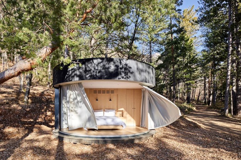 The LUMIPOD structure is made of steel, and the outer façade was covered with Douglas fir. A prefabricated cabin in France can be assembled in two to three days and is ideal for those who want to combine hotel comfort with the luxury of experiencing nature.