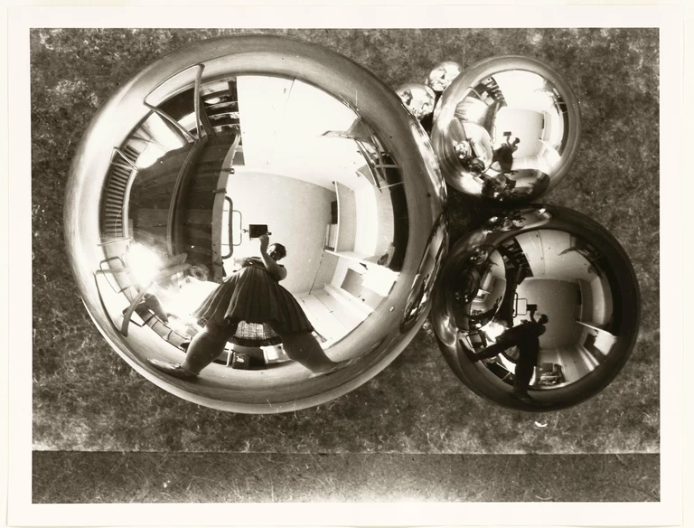 Marianne Brandt, Selbstporträt mit Kamera im Atelier in der Kugel gespiegelt, Bauhaus in Dessau, c. 1928–1929, Bauhaus-Archiv Berlin © VG Bild-Kunst, Bonn 2026