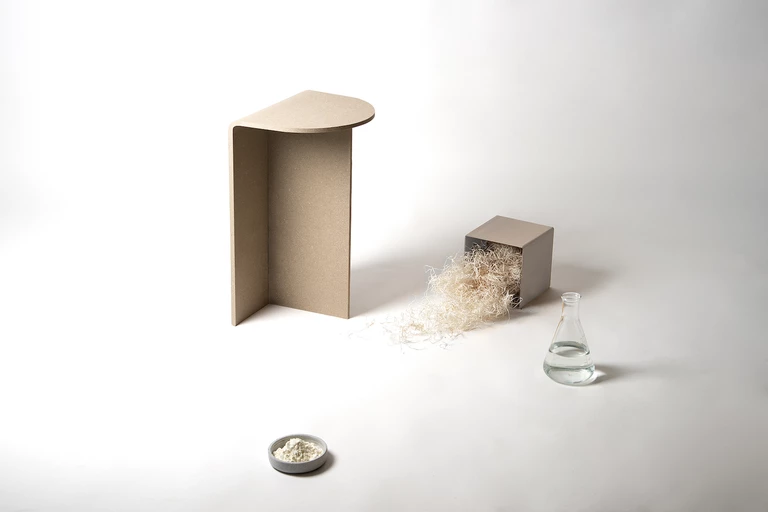 Furniture consumption and thus the amount of wood consumed per person is increasing every year. For years, pristine forests have been cut down to produce cheap furniture. Masses of bulky waste have to be disposed of or recycled as a result. The less pollutant wood contains, the better it can be recycled. However, much furniture is lacquered or glued with formaldehyde. They contain pollutants and cannot be recycled. The goal of the Superwood material development is to develop an aesthetic material that does not contain contaminants, consists of recycled components and is designed so that it does not have to be painted or coated.
